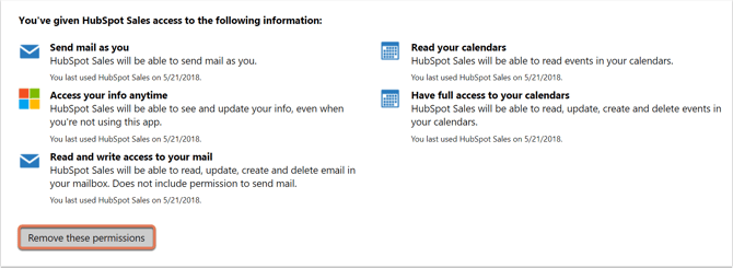 - Selecciona HubSpot Sales y haz clic en Revocar.